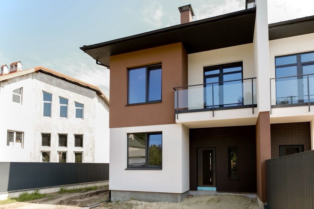 Вікна та балконні/терасні двері енергозберігаючі, 6-ти камерні, з подвійним склопакетом. З вітальні будинку є вихід у задній дворик з літньою терасою (є накриття), а також наявний балкон на 2му поверсі з панорамою на ліс.