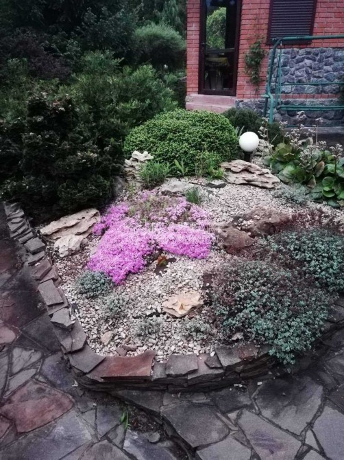 Територія вся облагороджена хвойними рослинами та газонною травою, декоративними квітами та альпійськими гірками.