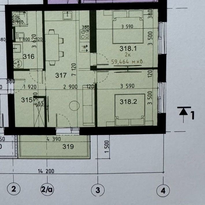 • Общая площадь 59 м2
