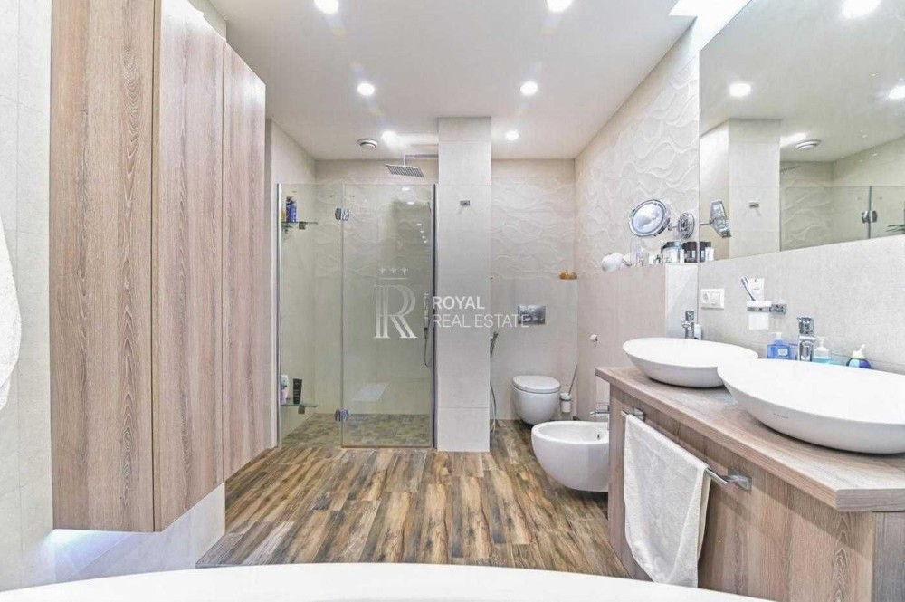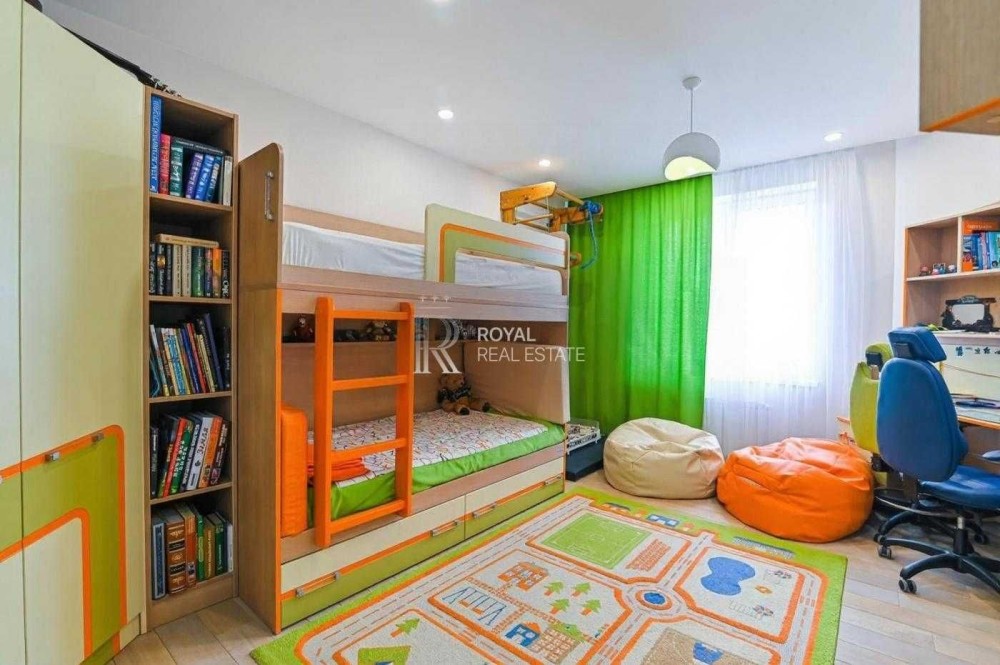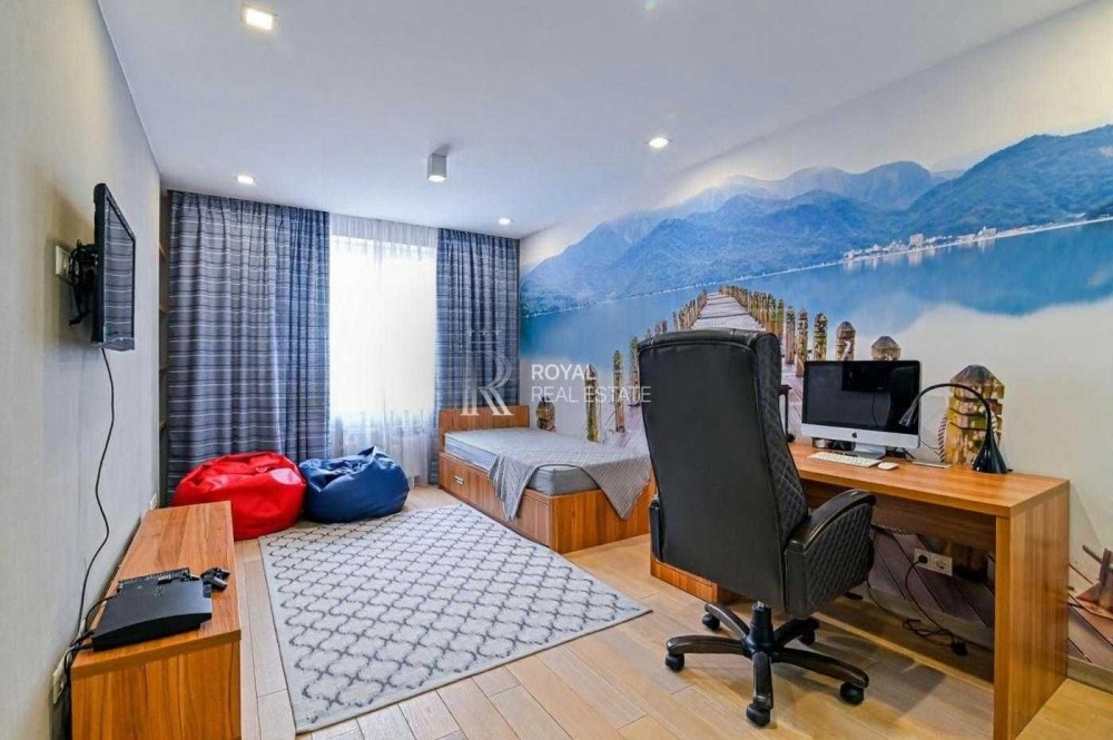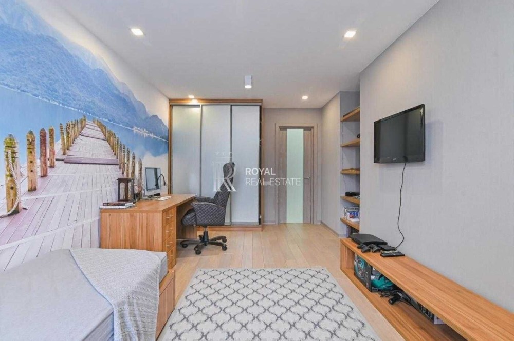 Пропонується до продажу розкішна видова п’ятикімнатна квартира у сучасному житловому комплексі бізнес-класу. Простора квартира з трьома спальнями, великою вітальнею, спортивною зоною та продуманими системами зберігання створена для комфортного життя у центральній частині Києва.