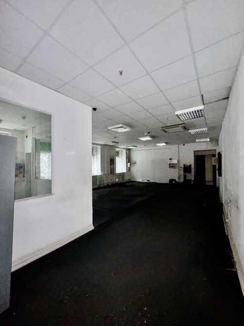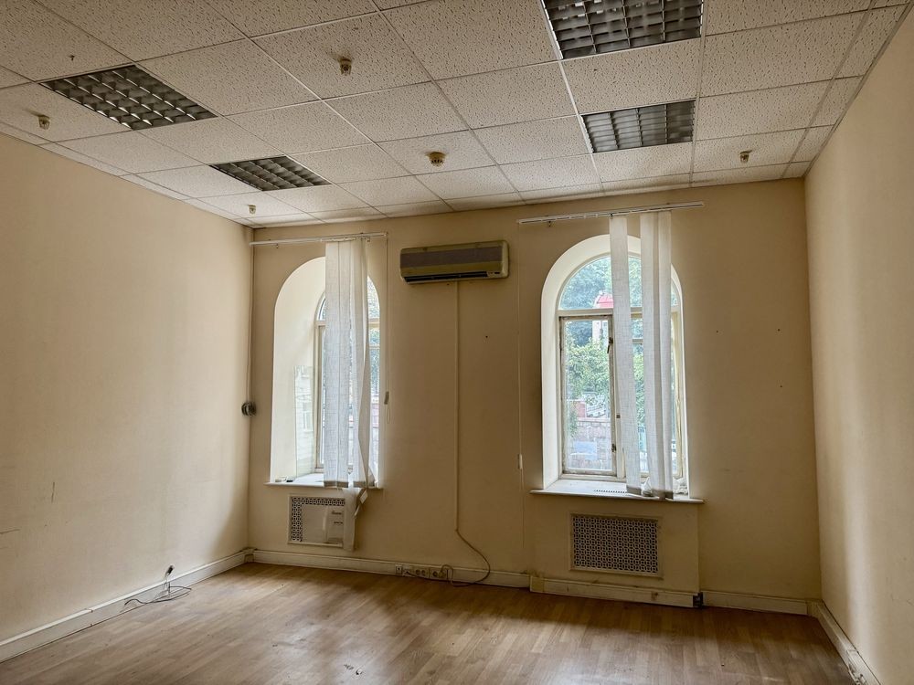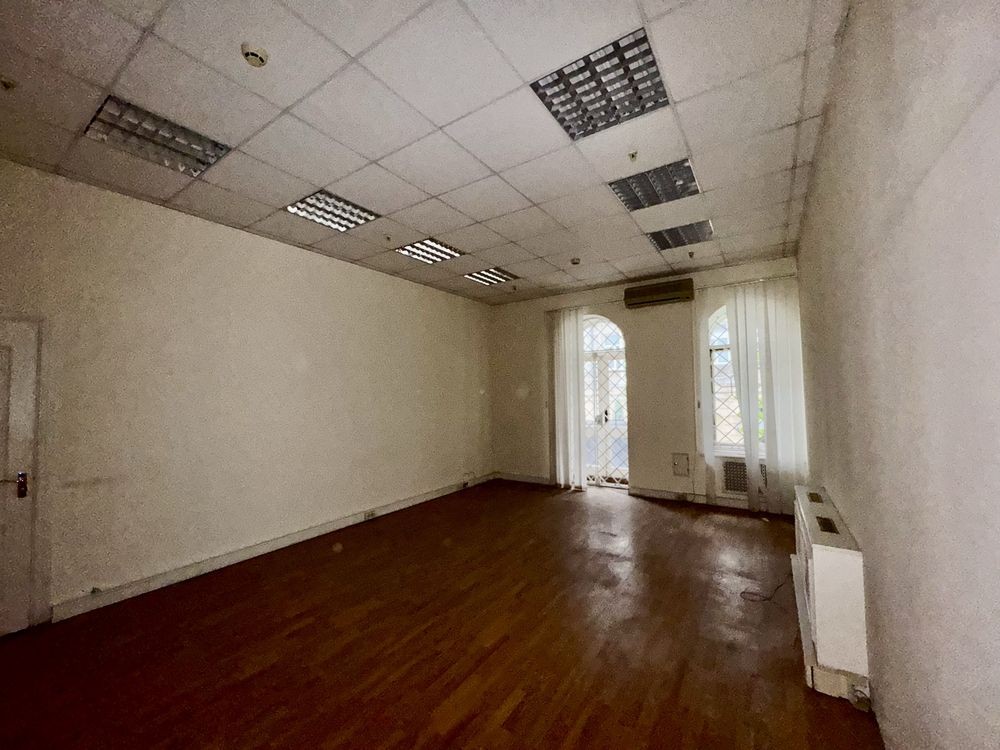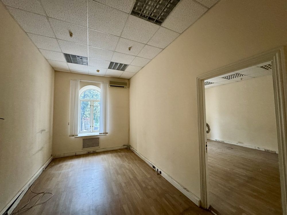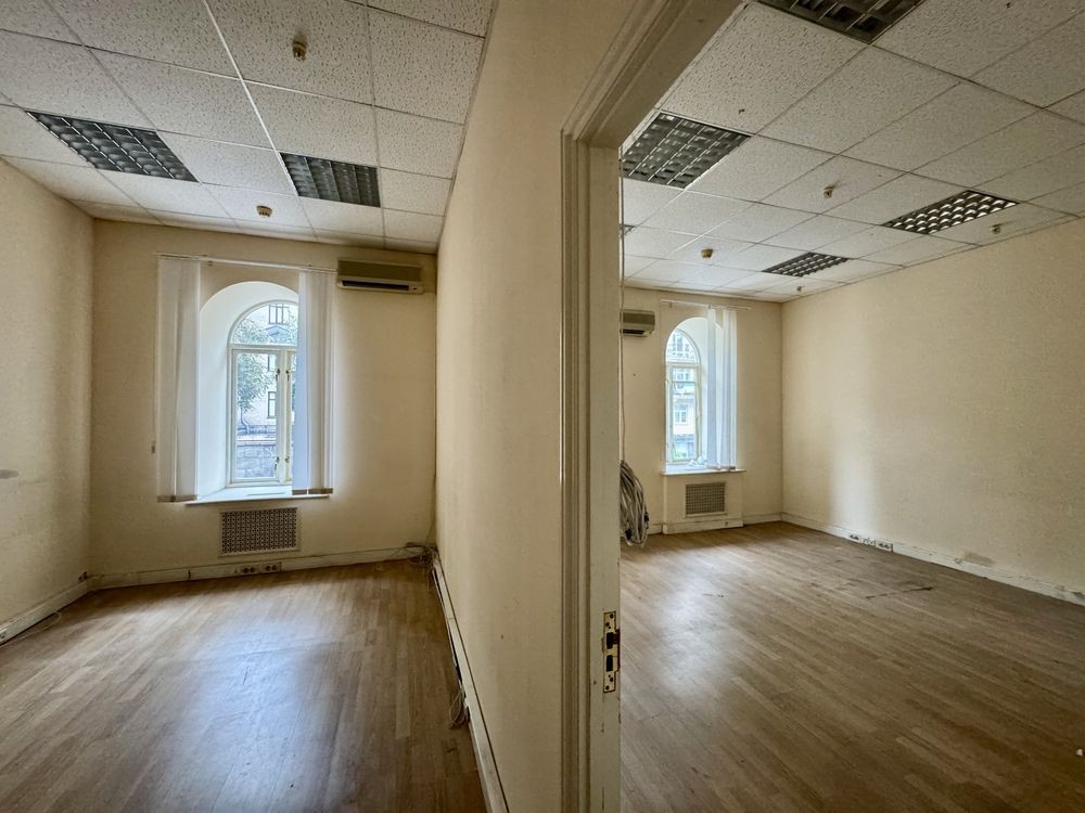 три великі кімнати (64,9 м², 42,5 м², 16,8 м²) із вітринними вікнами на фасад, кілька підсобних кімнат, санвузол і технічна зона.