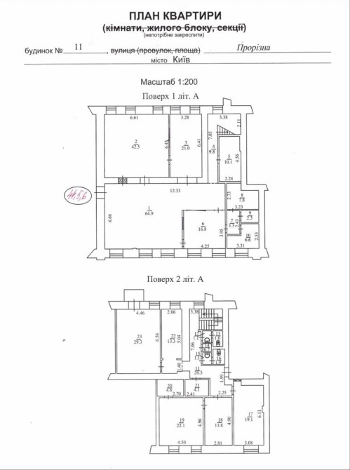 Пропонується до продажу унікальна квартира, утворена шляхом об’єднання трьох квартир (9 кімнат), розташованих на 1 та 2 поверхах історичної будівлі у центрі Києва — на вулиці Прорізна, 11 Шевченківського району.