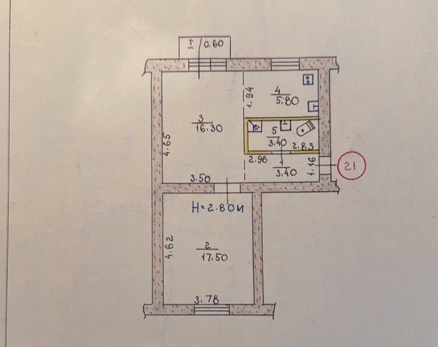 • Площадь кухни 5.8 м2