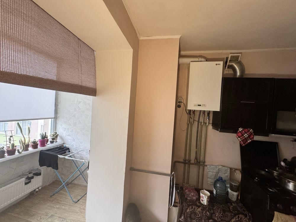 Є окрема спальна кімната та велика кухня-вітальня. Санвузол суміжний з ванною, стіни лише поштукатурені.
