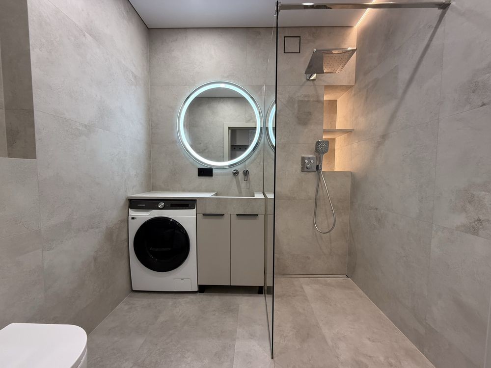 2 кондиціонери, 2 телевізори, посудомийна та пральна машини, холодильник, мікрохвильова піч, чайник, індукційна плита, духова шафа.