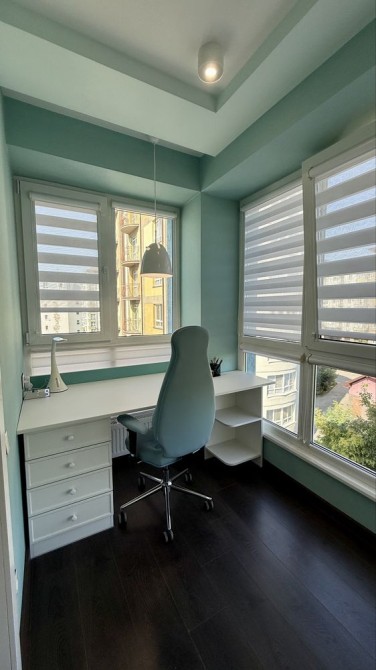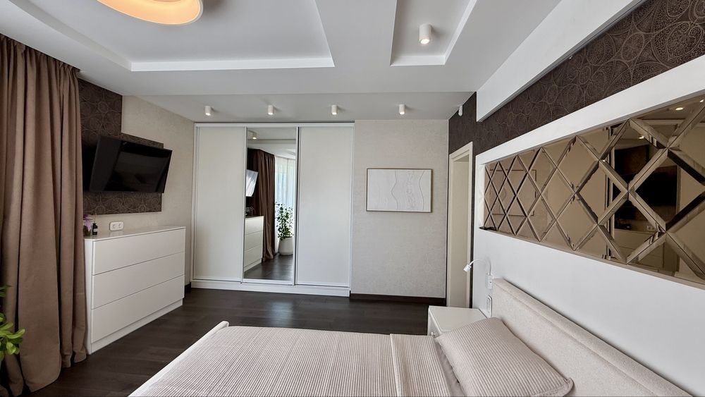 У квартирі встановлено кондиціонери, система охорони, відео домофон, підігрів підлоги, на підлозі якісний ламінат та широкоформатна плитка. Стіни декоративна штукатурка та фарбування в колір. Міжкімнатні двері з надійною фурнітурою. Сучасні корпусні меблі з фасадами фарбований МДФ , столова зона, мʼякі меблі, шафи, техніка (телевізори, пральна та сушильна машини, холодильник, морозильна камера, духовка, мікрохвильовка) квартира в повній комплектації. Багато зонне освітлення всієї квартири комбіновано точкове, бра, лед підсвітки, люстри. В батьківській спальні б'юті зона та гардеробна шафа, ТВ зона, декоративні дзеркальні панелі на стіні. Дитяча кімната в світлих тонах й спланована до дрібниць - гардеробна шафа та письмовий стіл плюс шафа для канцелярії та іграшок на лоджії. На кухні робоча поверхня зі штучного каменю, столова зона з панорамними вікнами по всій площині. Вхідна група обладнана гардеробною кімнатою що розділена на зони.