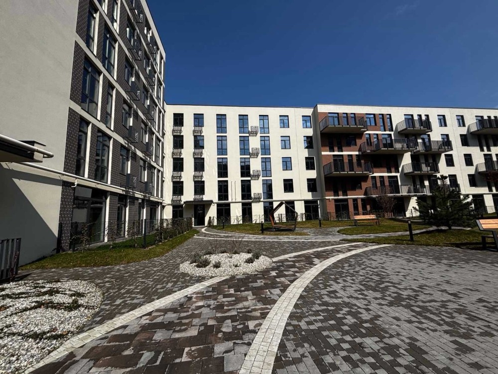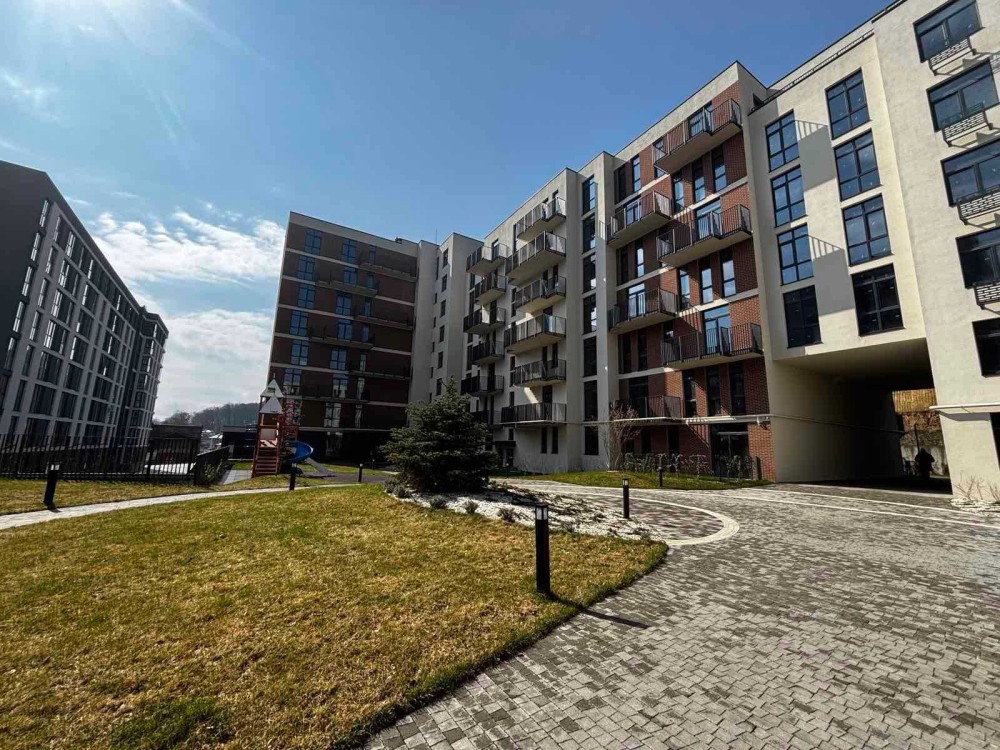 Виконаний ландшафтний дизайн за проєктом. Є дитячий майданчик, територія з зонами для відпочинку (прогулянкові зони та лавочки для відпочинку), насадження дерев та кущів по всій території. Лед освітлення території, вільний WI FI.