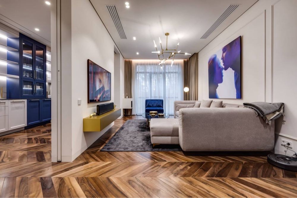 Квартира практичного планування. Кухня, вітальня, мастер спальня з власною гардеробною та ванною кімнатою.