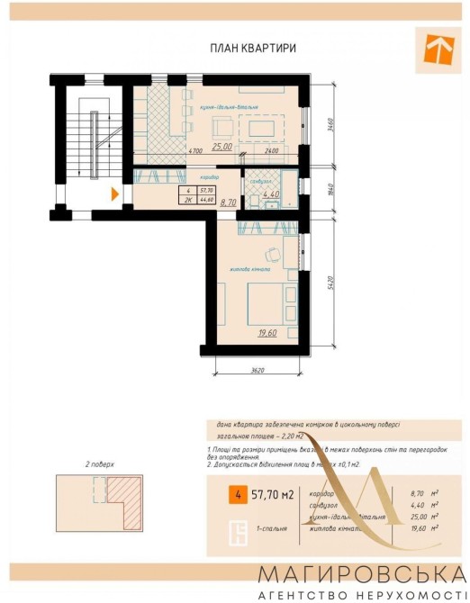 * Загальна площа: 57,7 м²
