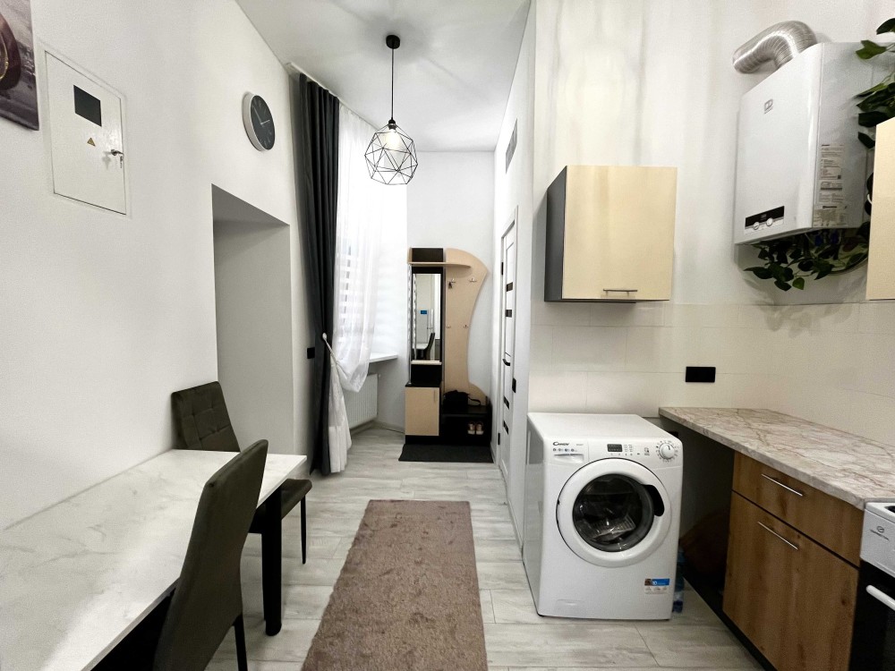 Австрійський будинок у центрі Львова. Правильне планування, вхід з підʼїзду, велика кімната з фасадними вікнами, кухня з відпочинковою зоною. Зроблений ремонт, замінені всі комунікації, двоконтурний котел. Є всі необхідні меблі і побутова техніка.