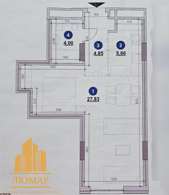 Загальна площа квартири 42.34 м2. не кутова.