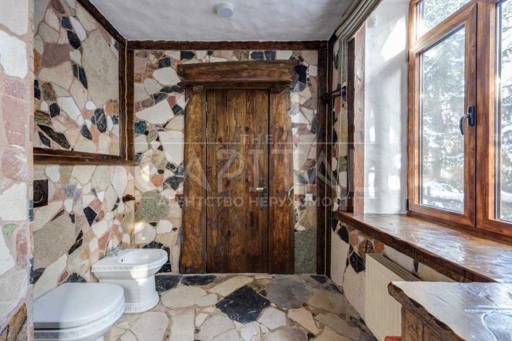Розумним рішенням архітектора було використання максимальної кількості природних матеріалів при його будівництві. Дерево та камінь – ідеальні природні будівельні матеріали. У цьому будинку вони широко використовуються як при внутрішній, так і при зовнішній обробці.