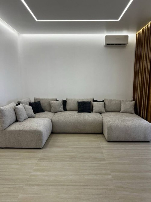 Затишна зона відпочинку з великим диваном і TV