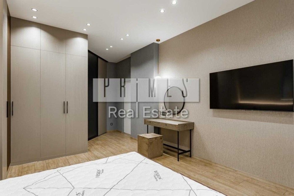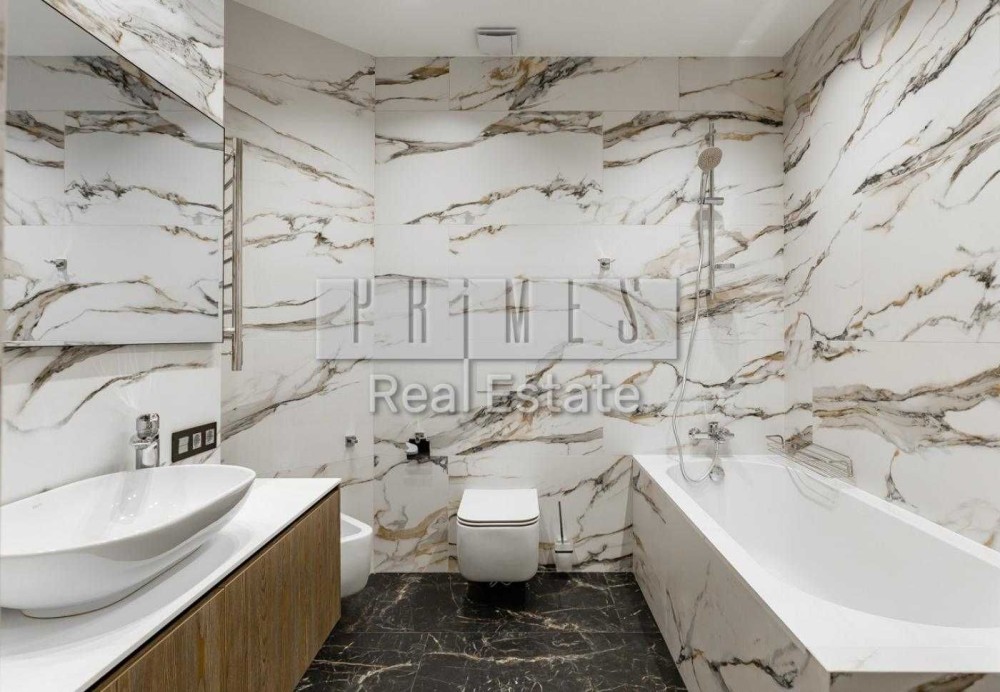 Вітальня-кухня, 3 спальні, одна з яких зі своїм окремим санвузлом, 3 санвузли, балкон, дві гардеробні.