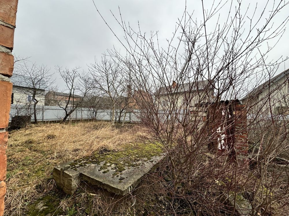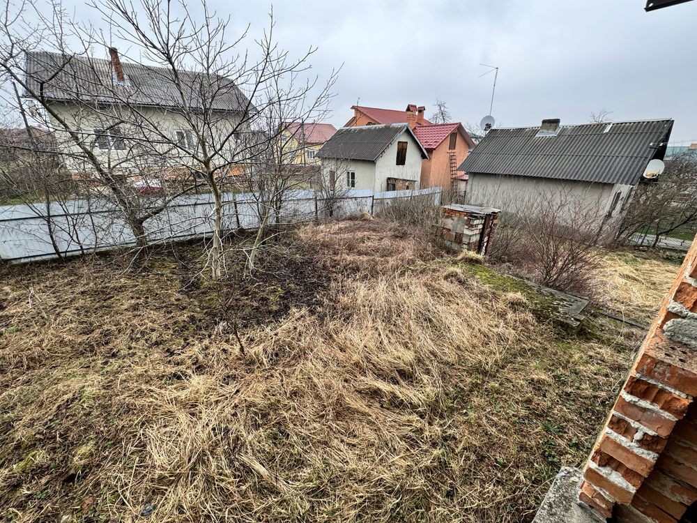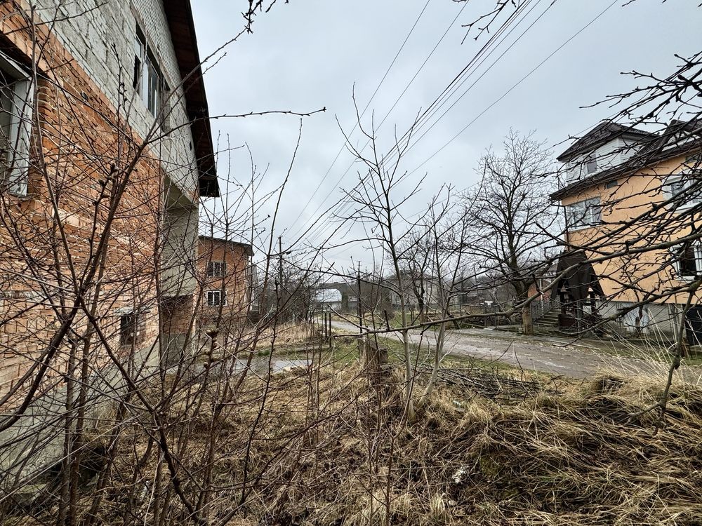 Правильної форми земельна ділянка, загальною площею 10 сотих, подвірʼя частково огороджене. Стан будівництва видно на фото, на першому поверсі частина стін по штукатурені і розведена проводка, поруч кругом проживають люди, світло стовпи попри ділянку, водопостачання криниця і є можливість підключення централізованого, решта комунікацій по сусідству.