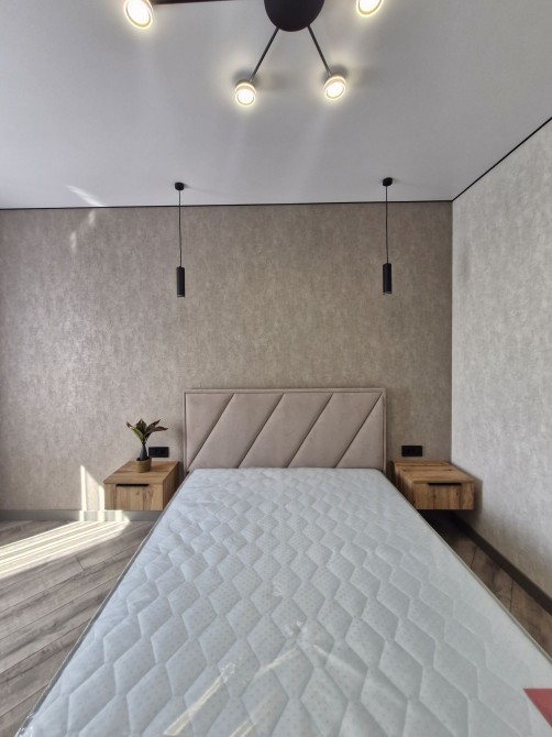 Спальня — затишна, в спокійних тонах, з новим ліжком і продуманим світлом. Тут реально відчувається комфорт.