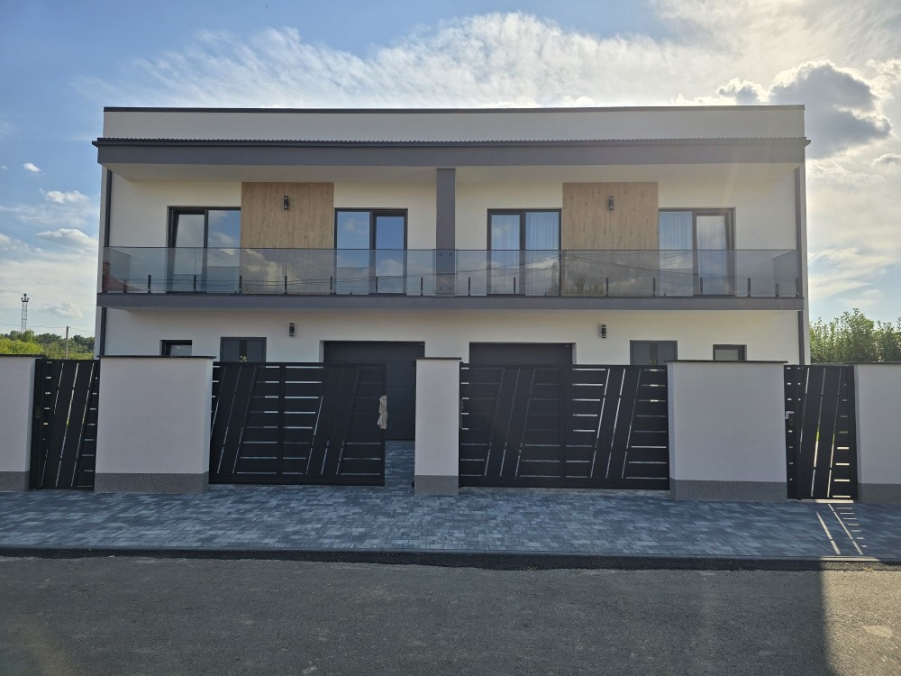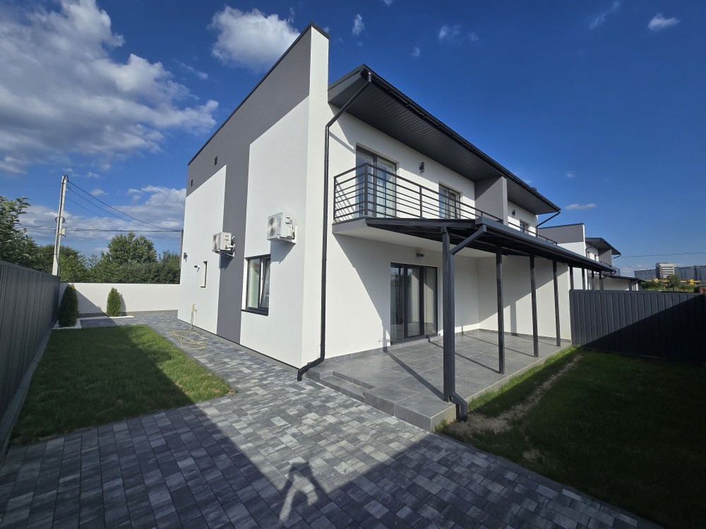 • 4 варіанти таунхаусів, з’єднані по 2 між собою, з яких 2 вже побудовані з однаковою площею 130 м², у чорновому стані, а 2 на етапі будівництва, з земельними ділянками по 3,0 та 2,2 сотки, розташовані позаду вже збудованих Танхаусів із зручним заїздом з центральної вулиці. Із уже побудованих актуальний до продажу тільки 1 – кутовий із земельною ділянкою 3 сотки.