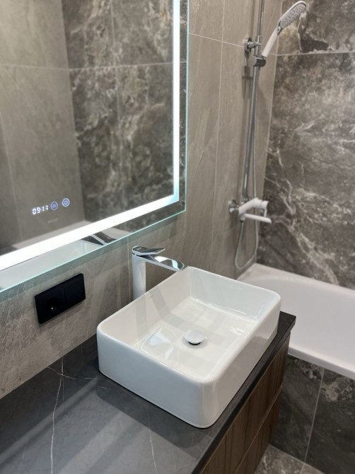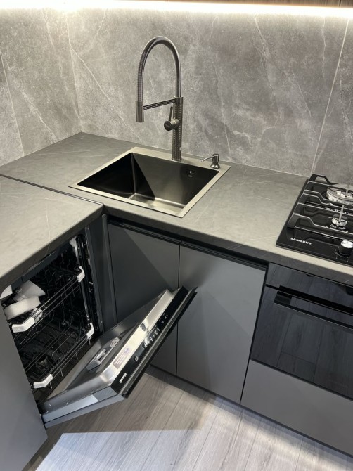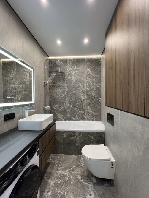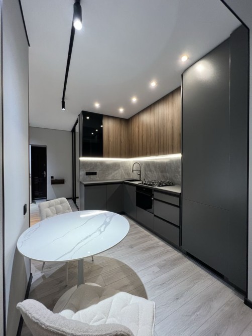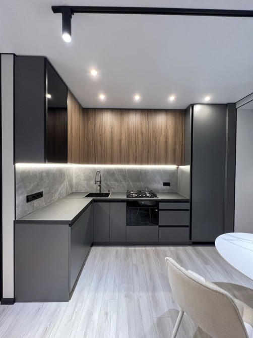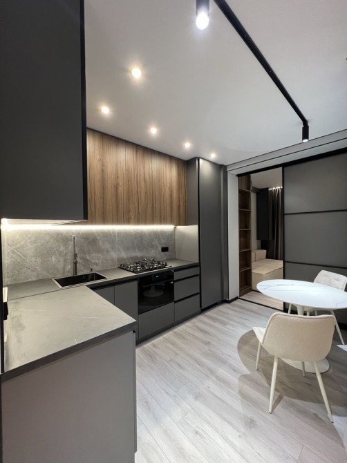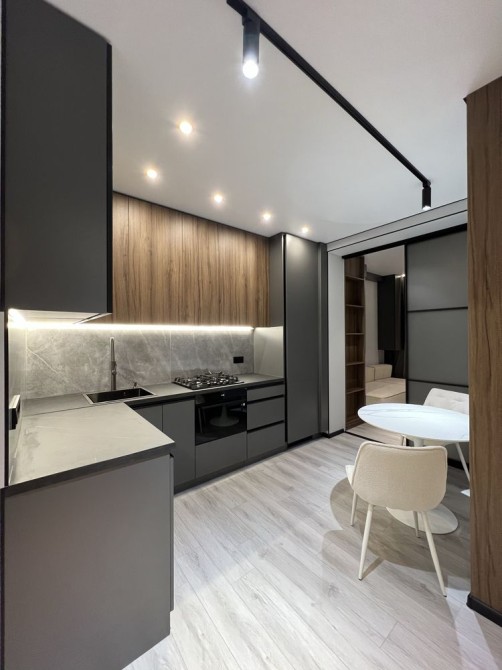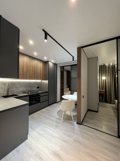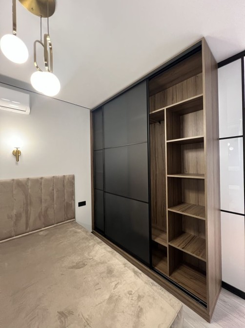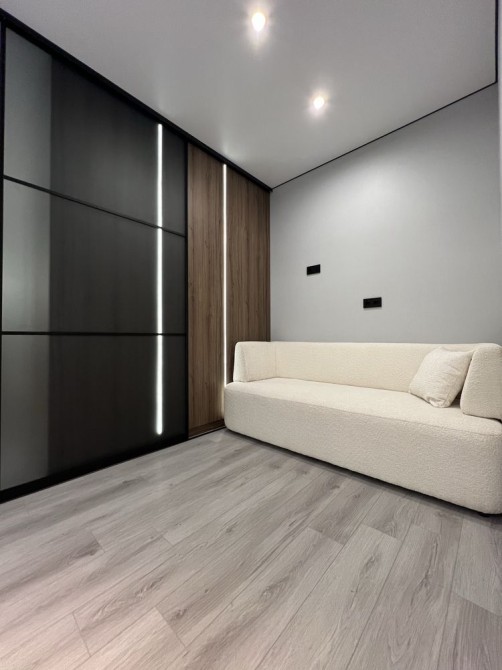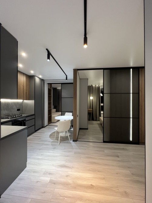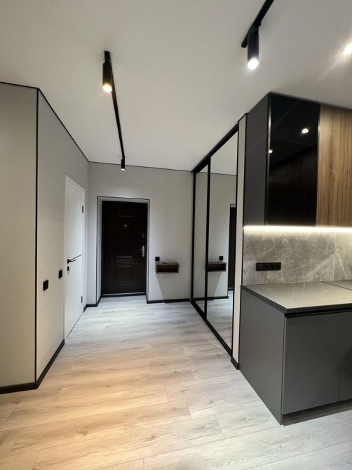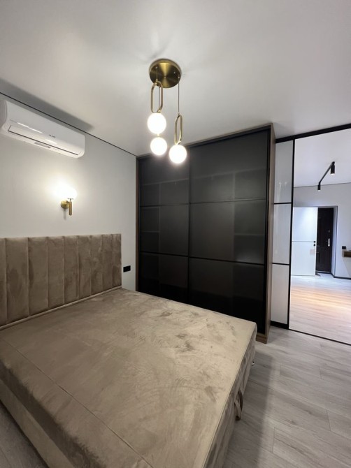 Квартира дуже простора та має гарне планування: коридор, гардеробна кімната, великий санвузол, кухня-студія та окрема спальня. Є всі необхідні меблі та техніка (посудомийна машина, пральна машина, духовка, вбудований холодильник, кондиціонери.