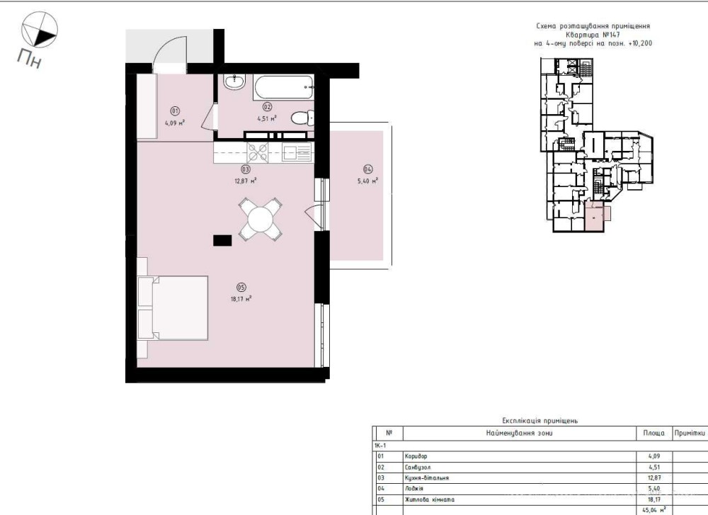 Монолітно-каркасний 20 поверховий будинок, простора квартира на низькому 4 поверсі площею 45 м кв. з панорамними вікнами та вільним плануванням. Квартира здається в наступному стані: стяжка підлоги, двокамерні склопакети з напиленням, панорамне скління лоджії, вхідні двері, лічильники тепла, води та електроенергії (двозонний), електрика вводиться тільки в квартиру (без розводки по квартирі), радіатори з нижнім підключенням, гідроізоляція в с/в, передбачені зовнішні місця для встановлення кондиціонерів. Введення будинку в експлуатацію 2 кв. 2028 року.