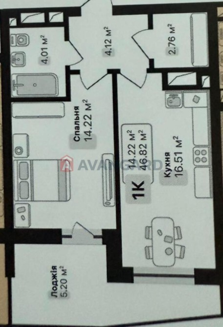 • Общая площадь 46 м2