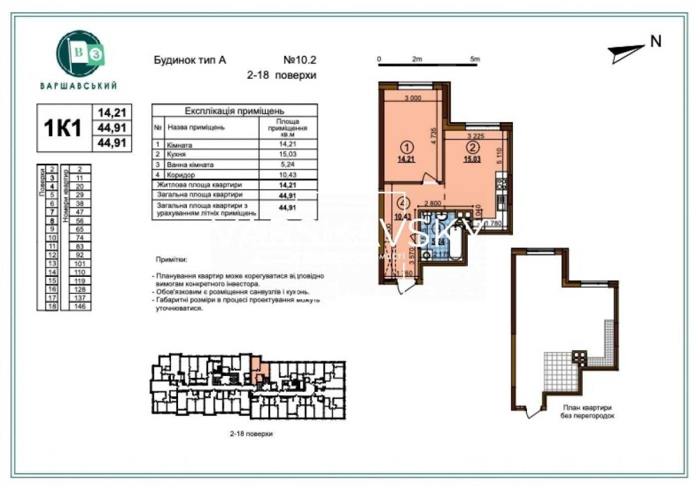 Загальна площа - 44.91 м2.