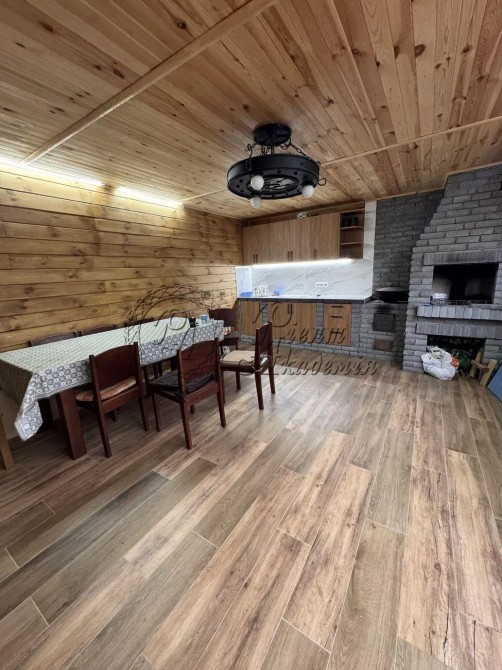 Продається капітальний житловий будинок в охайному, доглянутому стані: заходь - живи. Рік побудови - 2014. Розташування: Київська область, Бориспільський район, село Дударків (район зрубів). Відстань від воріт до ст. метро "Бориспільська" - 22 км, до ст. метро "Лісова" - 26 км. Під'їзд асфальтований. Загальна площа 216,8 кв.м., житлова - 111,6 кв.м., кухня - 12,4 кв.м., відкрита тераса 22 кв.м. В будинку чотири житлові кімнати (спальні), вітальня, два с/вузли з душовими кабінами, котельна, пральна, підвал, гараж на два авто (автоматичні ворота), погріб. Трифазне електропостачання з окремими стабілізаторами (на кожну фазу). Встановлено бензиновий генератор потужністю 6,5 кВт з автоматичним вмиканням у разі зникнення напруги в мережі. Газовий (з джерелом безперебійного живлення) та електричний опалювальні котли, бойлер для підігріву води. Водопостачання - особиста свердловина глибиною 60 метрів з фільтраційною системою очищення води. Чотири накопичувальні ємності (септики): для фекальної води (з вентиляцією) та відведення дощової (талої) води. Відеонагляд, домофон, сигналізація, провідний Інтернет. Площа земельної ділянки 22 сотки. Цільове призначення: будівництво та обслуговування житлового будинку. На території: літня кухня з барбекю, господарче приміщення, погріб, теплиця з полікарбонату, літній душ з вбиральнею, вольєр площею 13 кв.м., садок, газон з автоматичним поливом, город площею 7 соток. У садку: яблуні літніх та осінніх сортів, сливи, персики, вишні, черешня, айва, груша, смородина, виноград. По периметру ділянки паркан з профільного листа (фасадна частина на фундаменті з каменю). Автоматичні розсувні ворота. Будинок не перепродавався. Первісний документ - Свідоцтво про право власності. Поштова адреса, реєстрація місця проживання. Продаж за ціною власника, без комісійних посереднику.