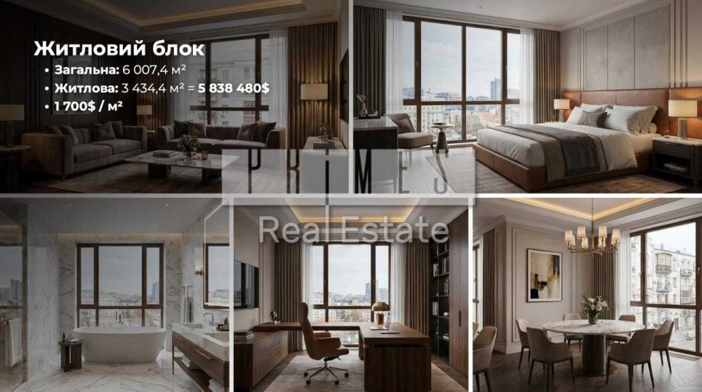 Житлова: 3 434,4 м2 = 5 838 480$