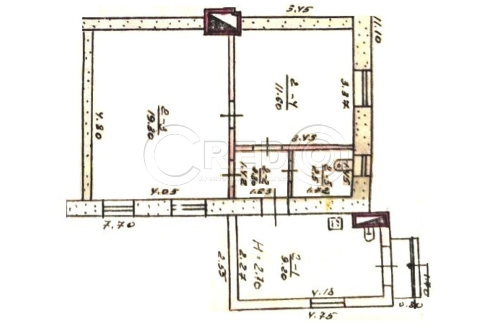 - 2 житлові кімнати 19,3 + 11,6 м.кв.