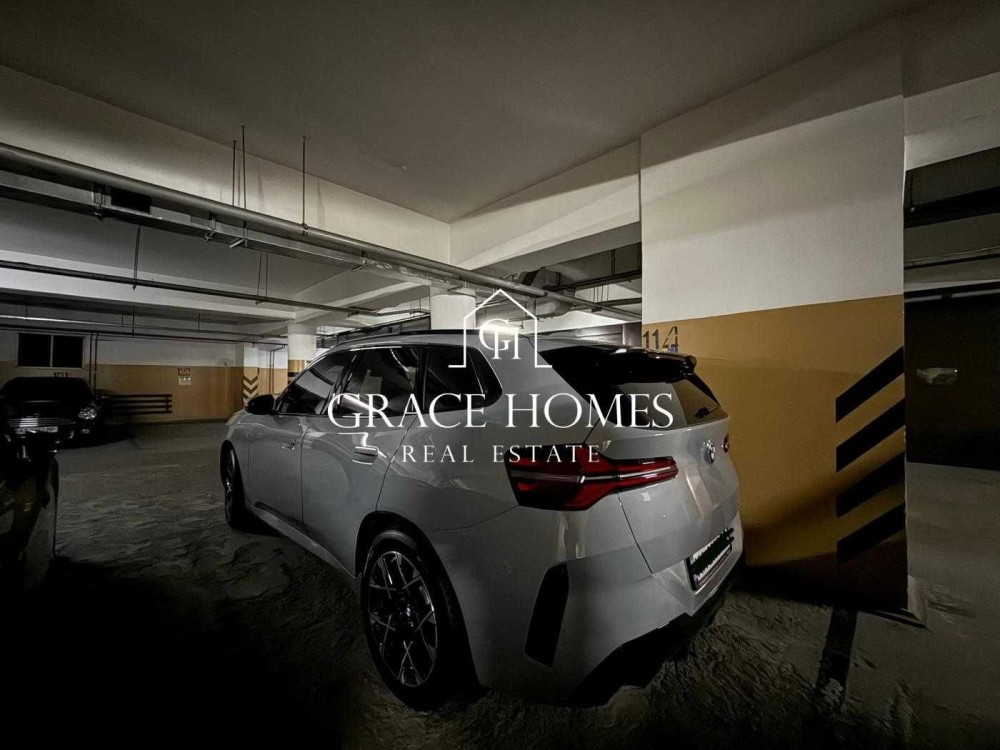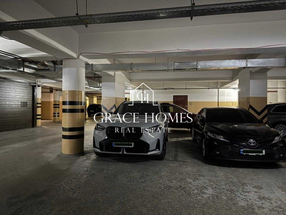 Площа ~ 13 м2, між колонами, що може додати м2. Комфортно для великих автомобілів.