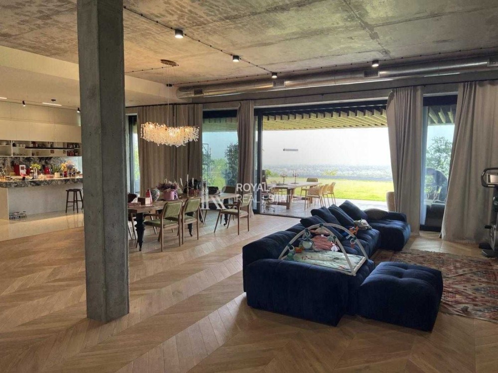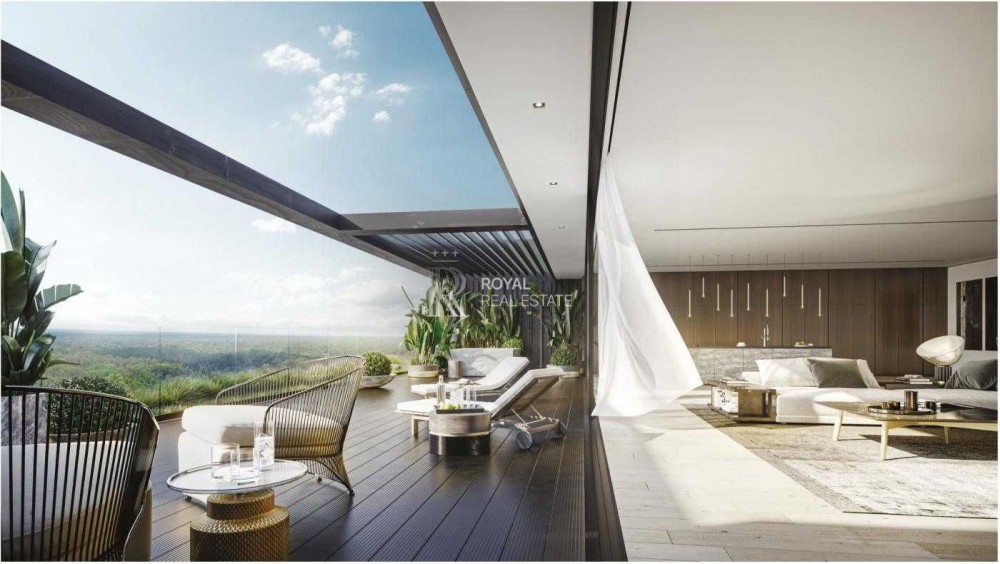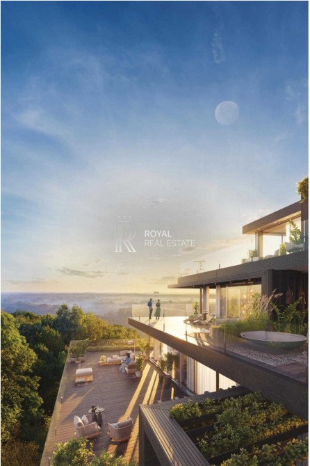 Квартира має панорамне скління та відкриває безмежний вид на природні пагорби. Висота стелі — 3–3,3 м, що створює відчуття простору та дозволяє реалізувати сучасні дизайнерські рішення. Великі тераси ідеально підходять для облаштування зони відпочинку або власного зеленого саду.