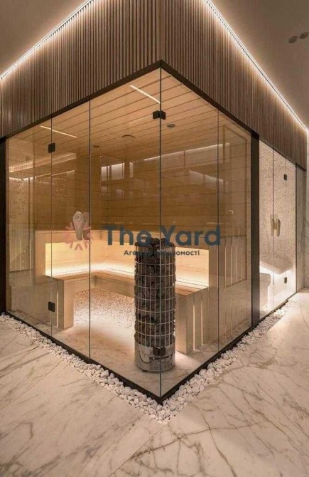 Простора вітальня, кухня-їдальня, гостьова спальня, кімната відпочинку, кабінет, спортзал, фінська сауна, джакузі, а також кімната відпочинку з масажним столом.