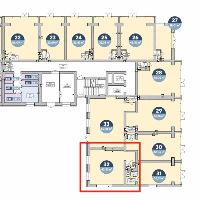 Загальна площа – 43 м²