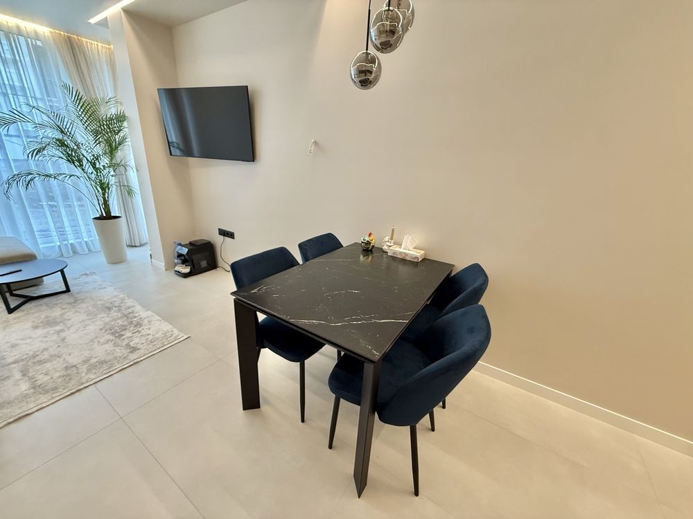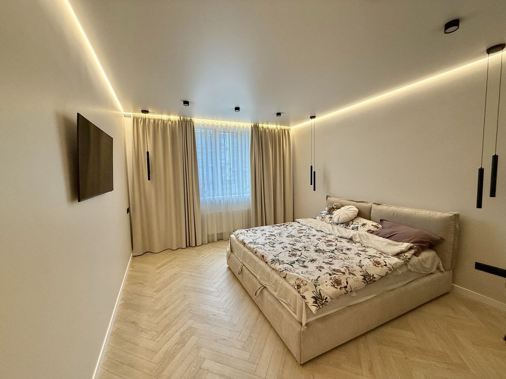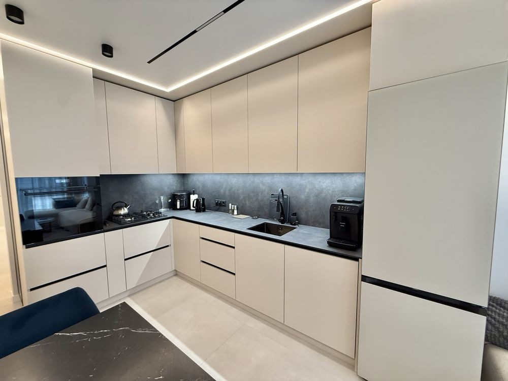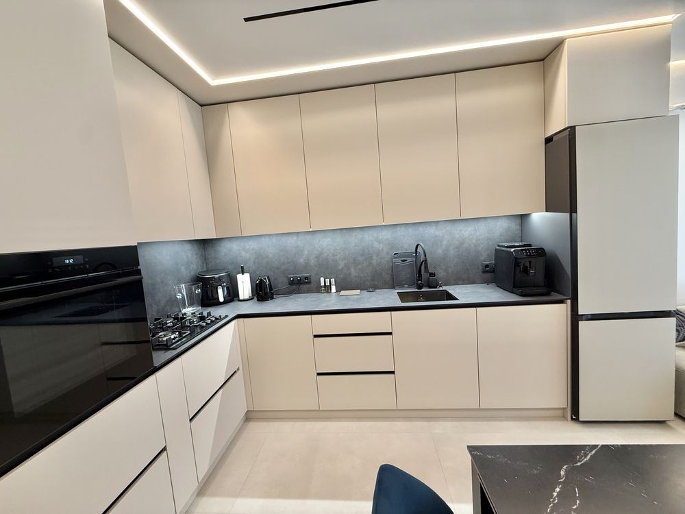 •В квартирі залишаються всі меблі: 2спальне ліжко, великий кутовий диван, кухонні меблі та побутова техніка(газова варильна поверхня, духовка, посудомийна машина, холодильник, витяжка, пральна машина, сушильна машина, телевізор)