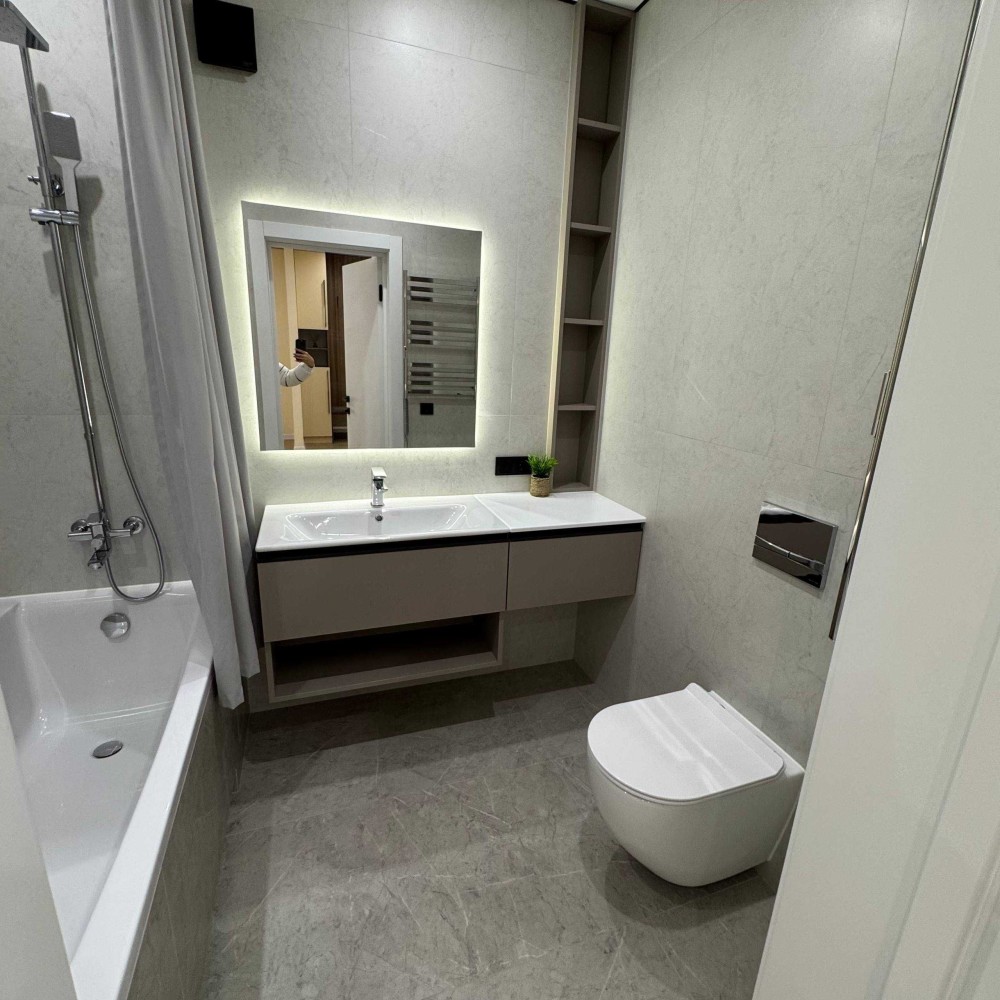 -шикарна ванна кімната з ванною ,інсталяцією та дзеркалом з підсвіткою.