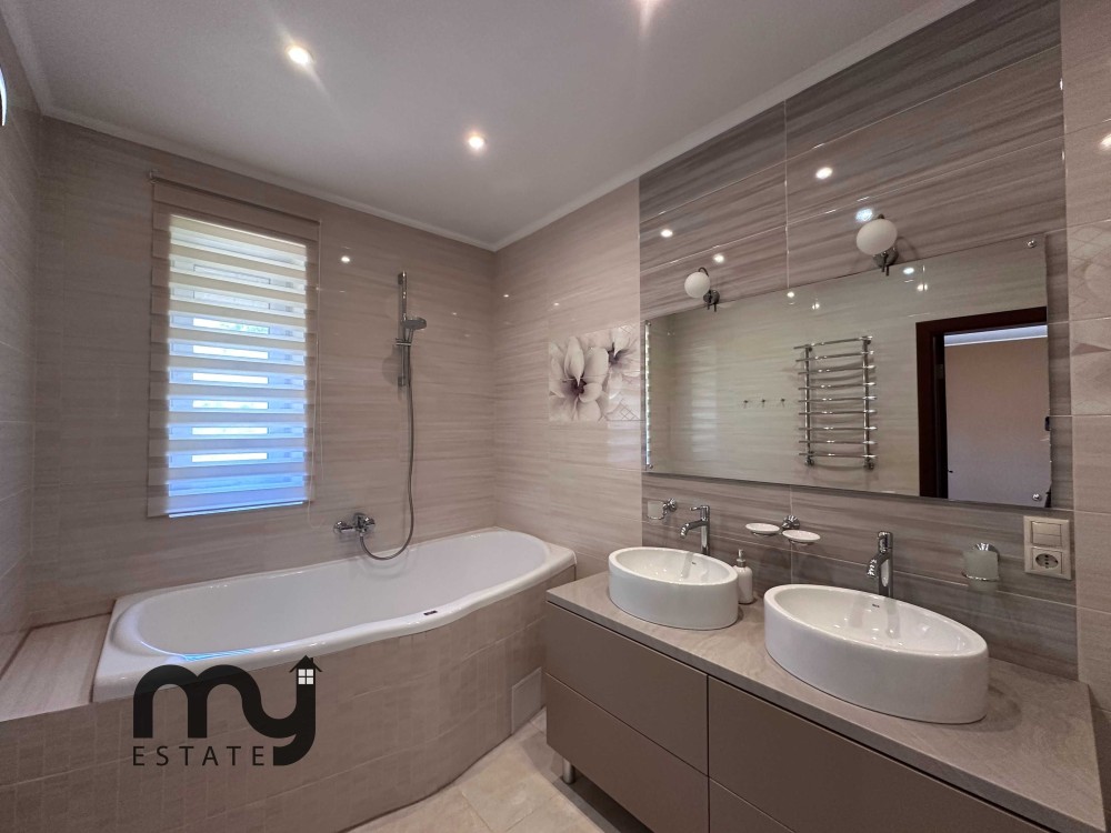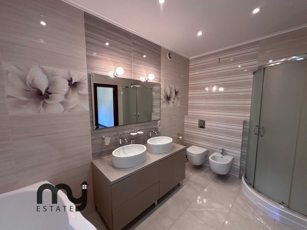 - В головній спальні великий санвузол з ванною, 2 умивальниками і душовою, біде