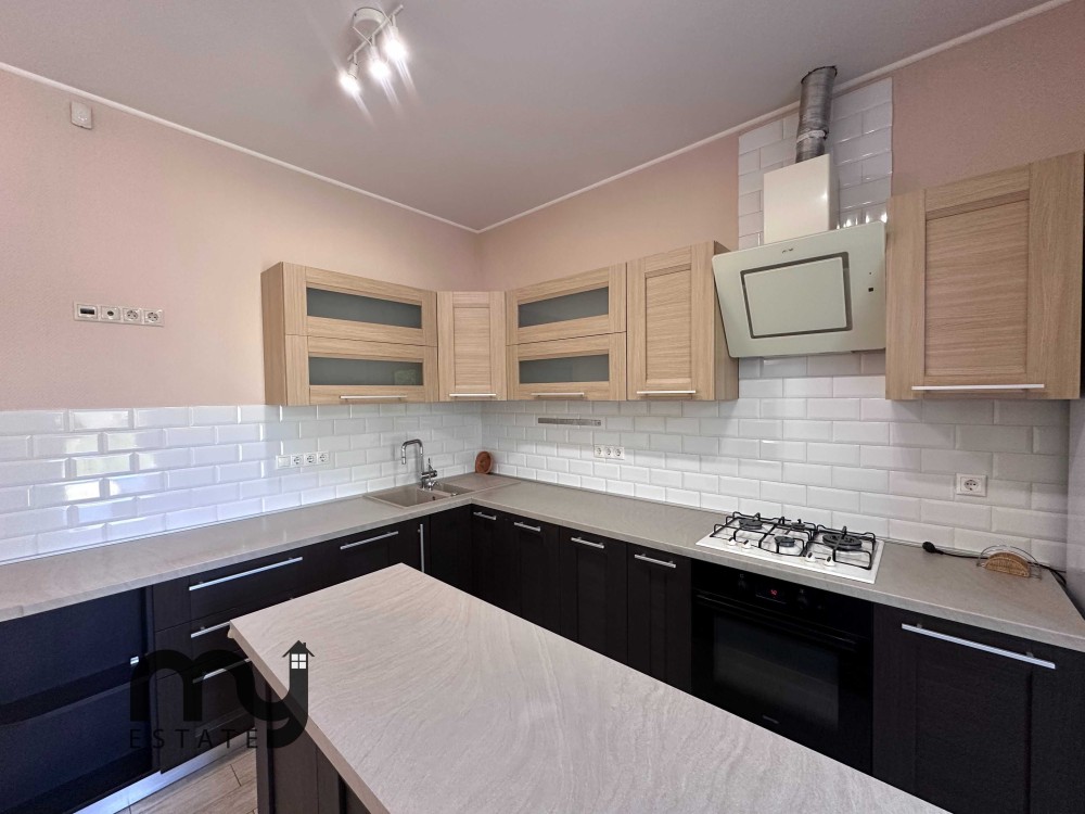 • Кухня має окремий острівець і дуже багато місця для зберігання потрібних речей. Газова плита, холодильник. З кухні є вихід на задній двір.