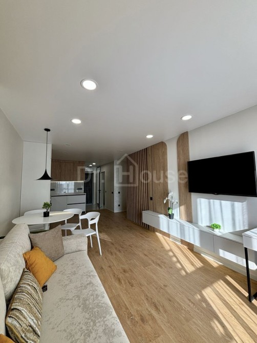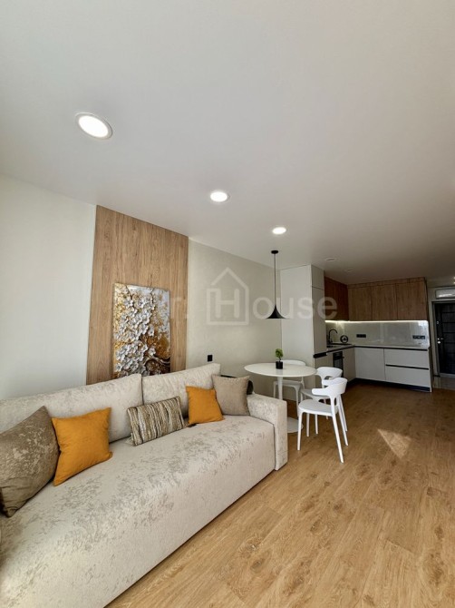 Відпочинок: У вітальні встановлено сучасний телевізор, зручний диван та стильне зонування.