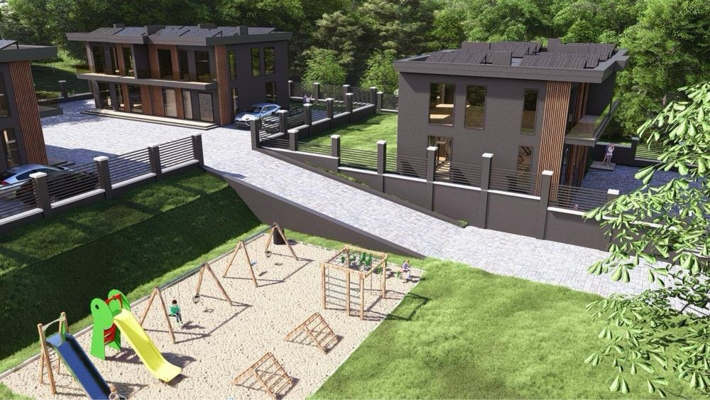 Сучасні автономні котеджі з панорамним виглядом на ліс у Брюховичах.