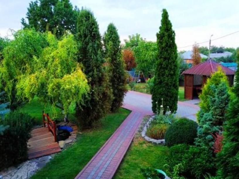 Земельна ділянка рівна, прямокутної форми розміром – 13,0 сот., приватизована, огороджена кам’яним та залізобетонним забором. Зроблено ландшафтний дизайн із декоративним озером, освітленням території, невеликим садом. На ділянці різноманітні дерева та кущі,ківі, туї, ялівці, лиственниця, гніздовидна ялина, ялина (коніка), плакуча шовковиця, кедр, сосна кримська, ялиця корейська, барбариси,магнолія сосна, молоді фруктові дерева.