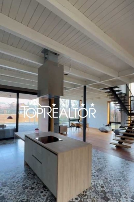 Будинок дуже світлий і просторий завдяки панорамним вікнам.