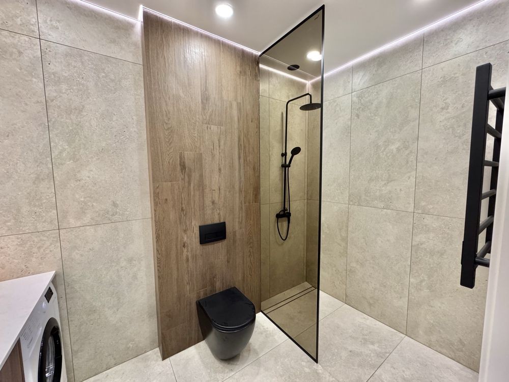 Повністю укомплектована ванна кімната.