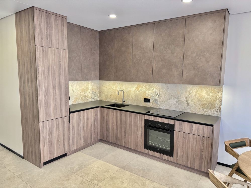 Вмонтовані кухонні меблі та побутова техніка.