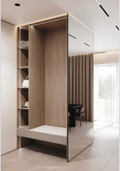 1 поверх: гардеробна, простора кухня-вітальня з виходом на вже готову терасу(тераса 22 м2 ) та санвузол.