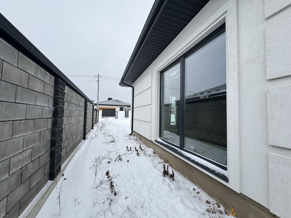 Поанування: три окремі кімнати, велика кухня-вітальня з виходом на терасу, гардеробна, гараж з входом у будинок