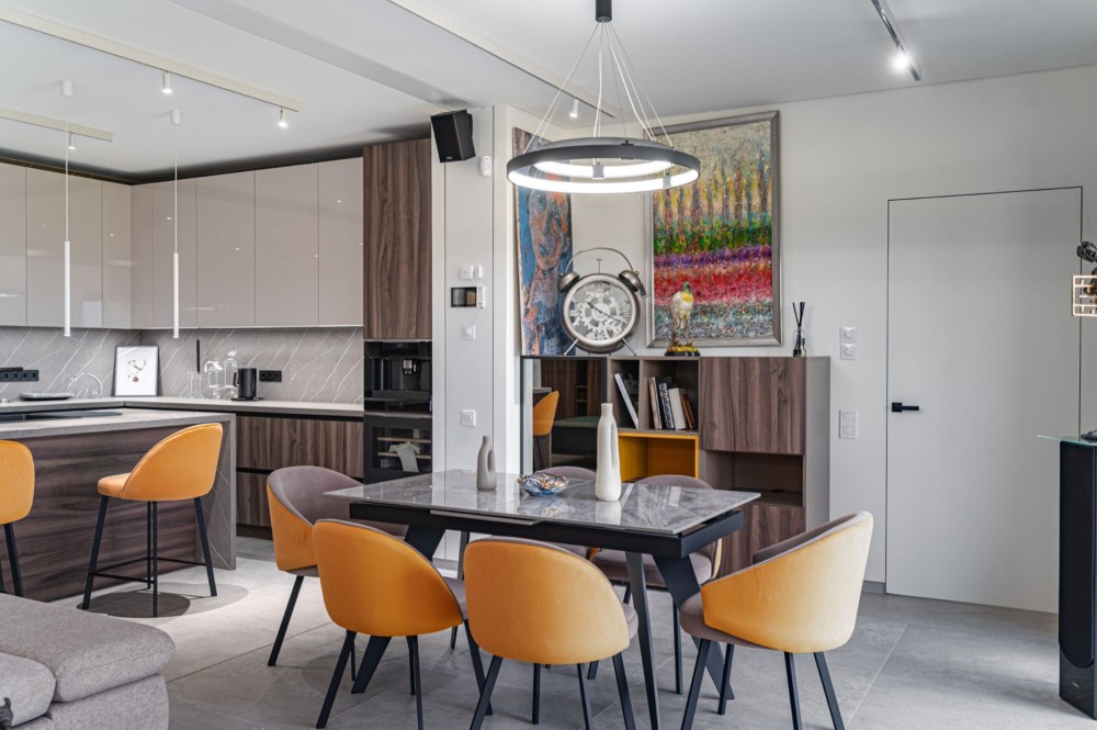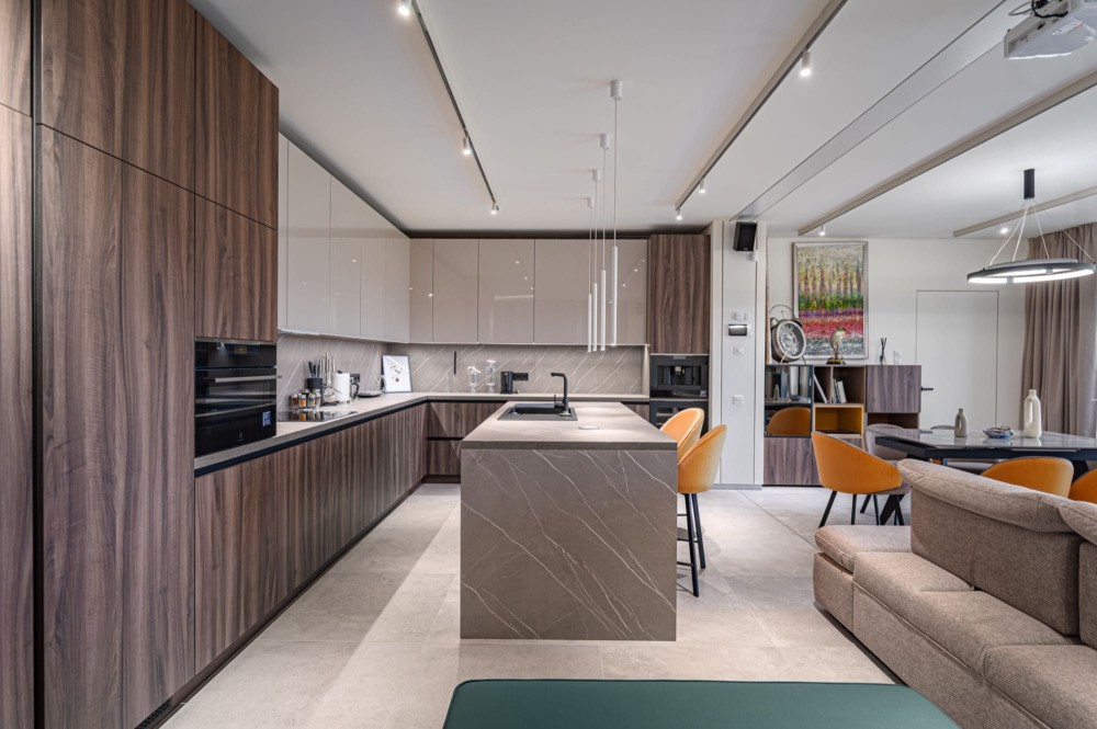 кухня-вітальня з панорамними вікнами;