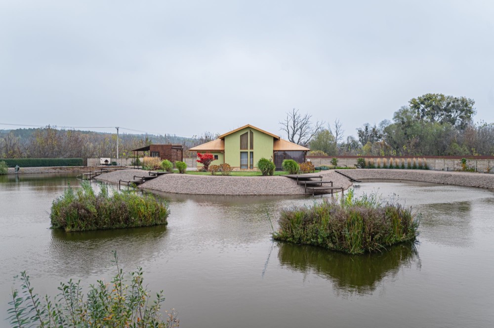гостьовий будинок-рибальський посеред власного озера з рибою
