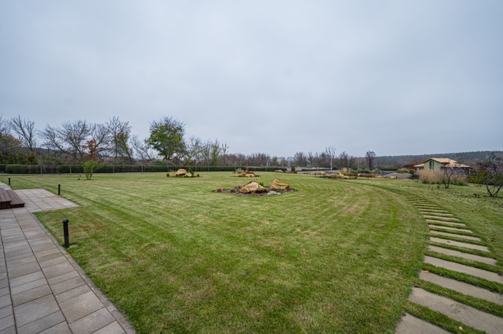 Ландшафт створений професіоналами: декоративні трави, квіткові композиції, хвойні та листяні дерева, плодові сади, троянди, живоплоти.