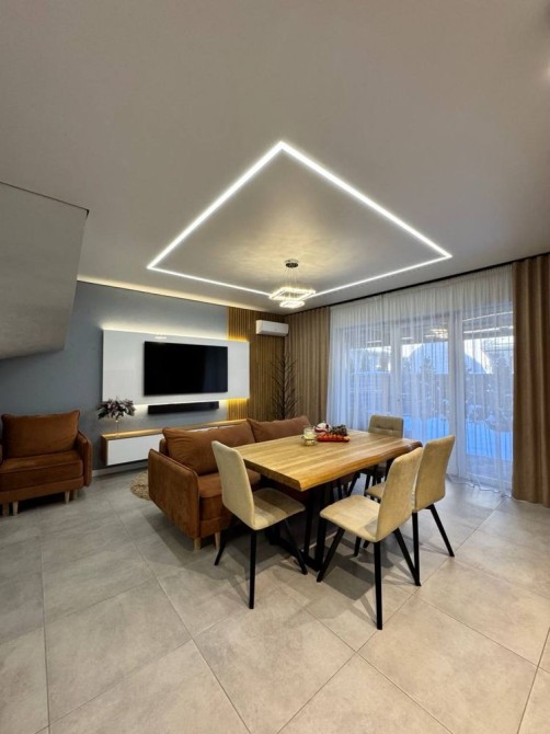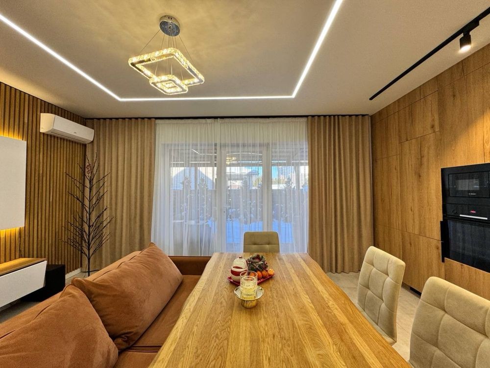 Просторий, світлий інтер’єр з продуманим плануванням та якісним ремонтом. Оздоблення виконано у спокійних спокійних тонах, будинок укомплектований меблями та технікою — можна заїжджати без додаткових витрат.