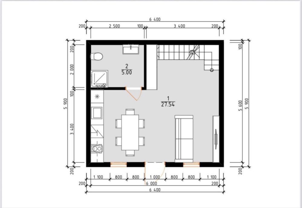 Площа 66м2 достатньо для сімʼї або як дача для відпочинку. До того ж є маленький дворик, де можна організувати невеликий сад або зону для відпочинку на свіжому повітрі.