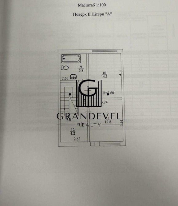 Загальна площа - 133 м2, жилова - 27 м2, кухня - 41 м2.